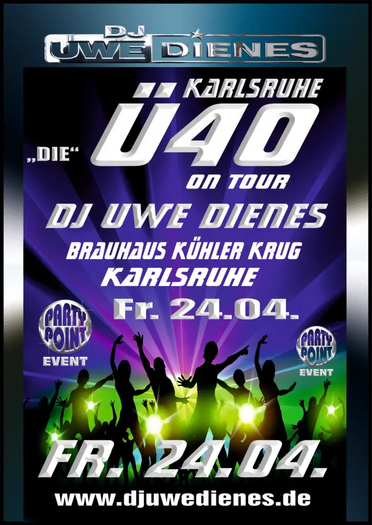 Am Samstag, 28.03., erwartet euch im BKK / Kühler Krug Karlsruhe eine stimmungsvolle Ü30-Party mit bester Musik und echter Partynacht-Atmosphäre. DJ Uwe Dienes sorgt für den passenden Sound und eine volle Tanzfläche.